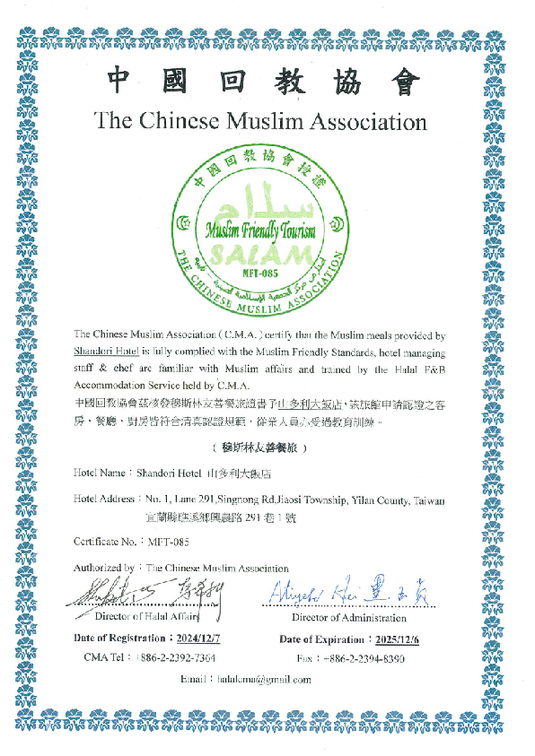 山多利大飯店-穆斯林友善餐旅認證 Shandori Hotel – Certified Muslim-Friendly Tourism & Dining