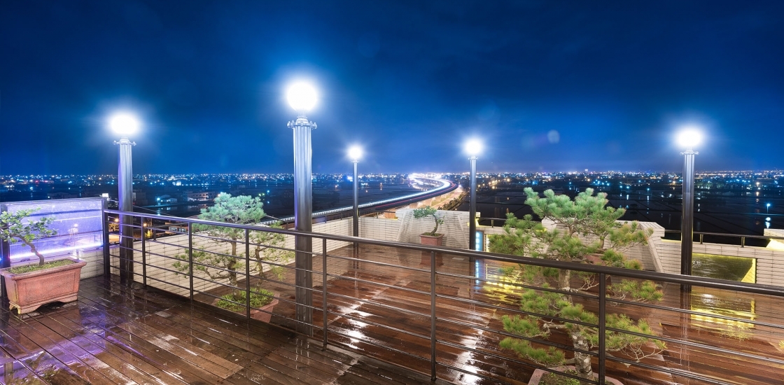 夜晚,抬頭即可仰望星光閃爍、低頭便飽覽夜景美麗燈火。